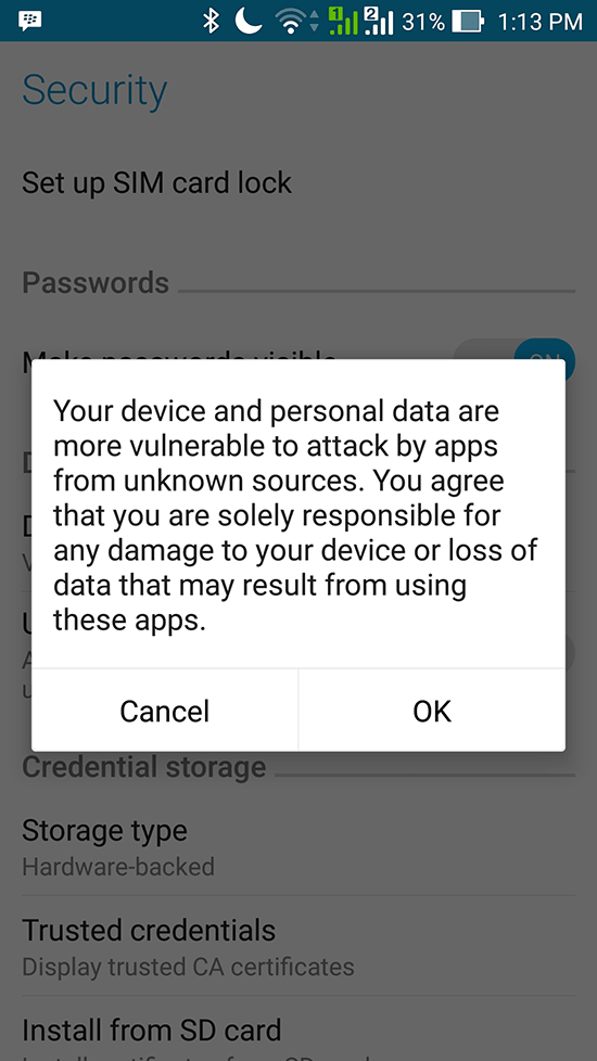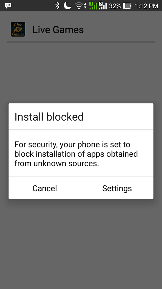 2. Jika sudah selesai, klik dan install langsung file Vegas88.apk, jika muncul keterangan Install Blocked, Pilih dan Klik “Settings”, setelah itu pilih “Unknown Source” di bagian “Security”, Centang/Klik pada bagian seperti yang dilingkari pada gambar dibawah ini.